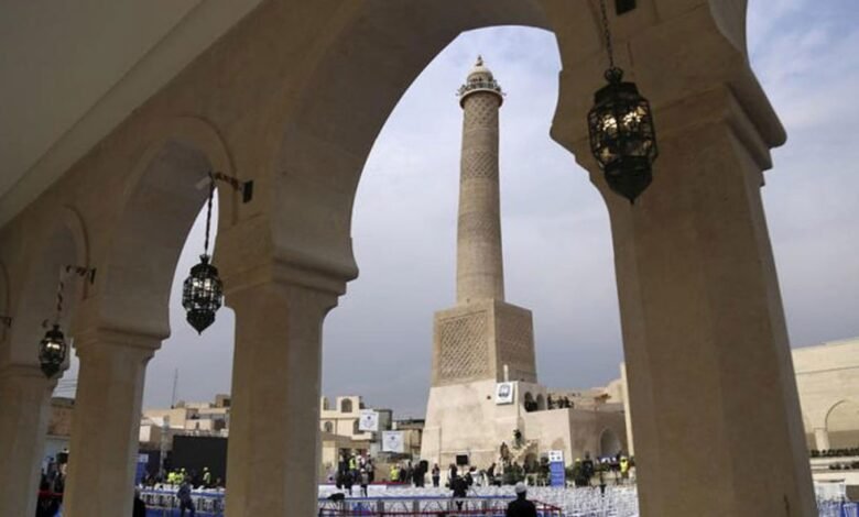 جامع النوري الكبير في الموصل يفتح أبوابه من جديد بعد سنوات الدمار، عودة رمزية للصمود والتراث.